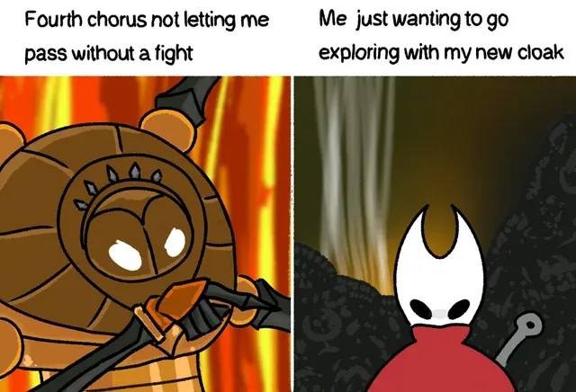 The gender of this game. I knew Hollow Knight was one of the few nonbinary protagonists in video games, but I figured that they'd just be an anomaly in the world of Hollow Knight. Turns out, no. Hornet is the anomaly in Hollow Knight for having a gender specified. This keeps pretty in line with bugs in nature. Larger bugs are usually female, smaller ones are male. Larvae have no defining gender markers in most cases.